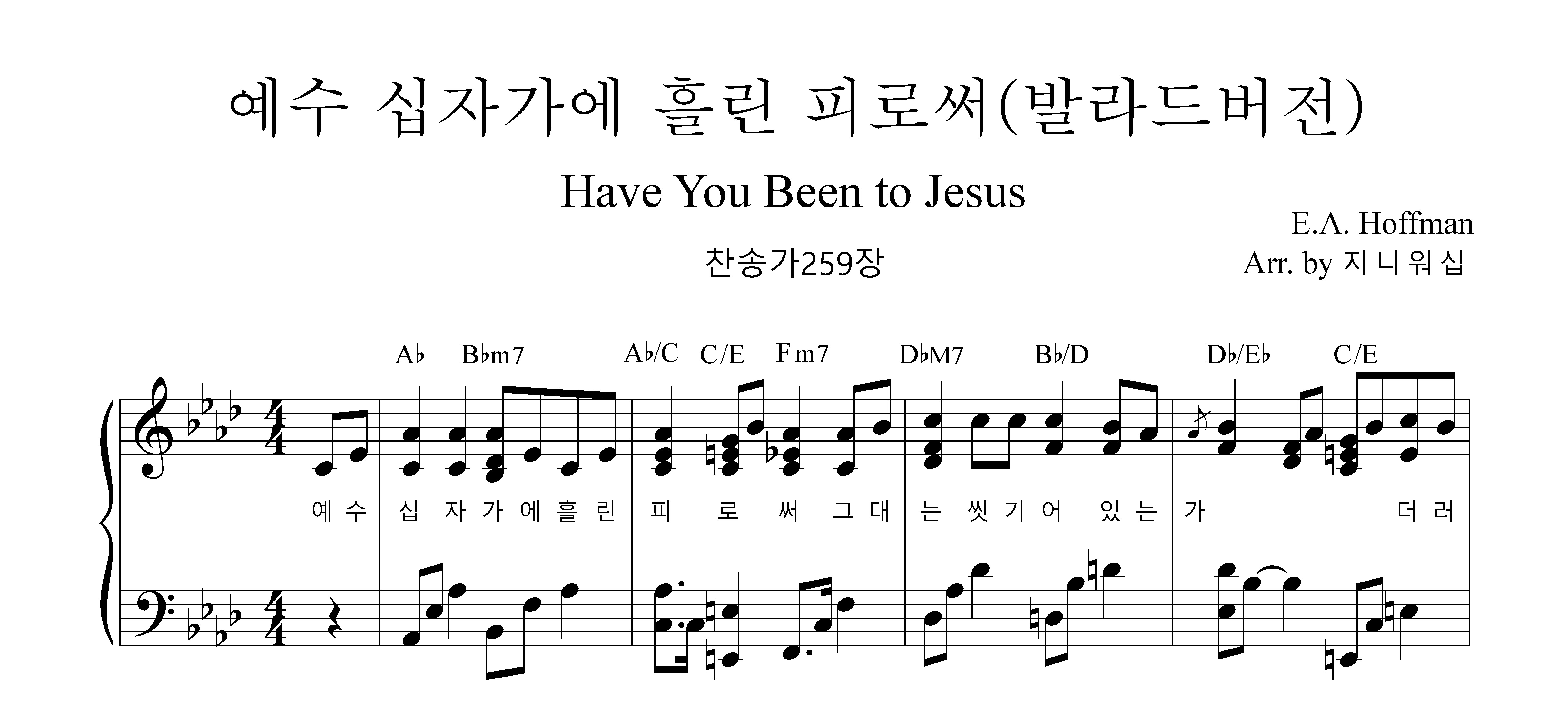 예수 십자가에 흘린 피로써 찬송가 편곡 악보 셔플리듬빠른버전,발라드버전 259장 Ab키,G키,F키