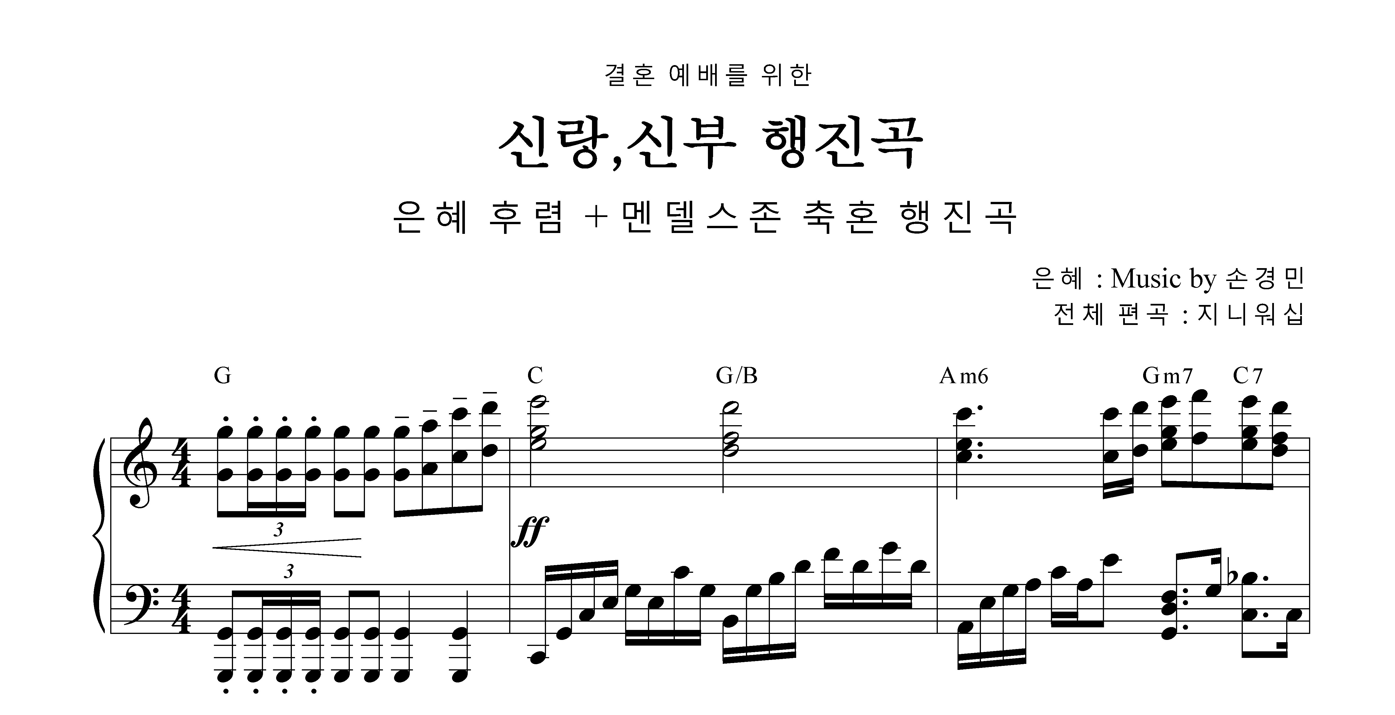 행진곡으로 은혜 후렴을 신청해주셨는데 제가 멘델스존의 축혼 행진곡을 덧붙여 편곡 했습니다