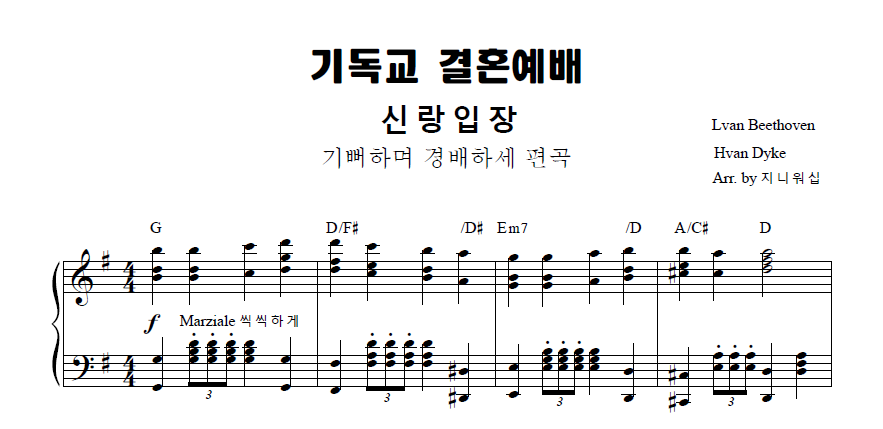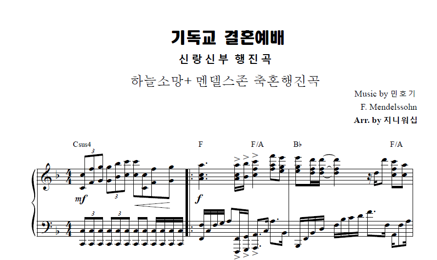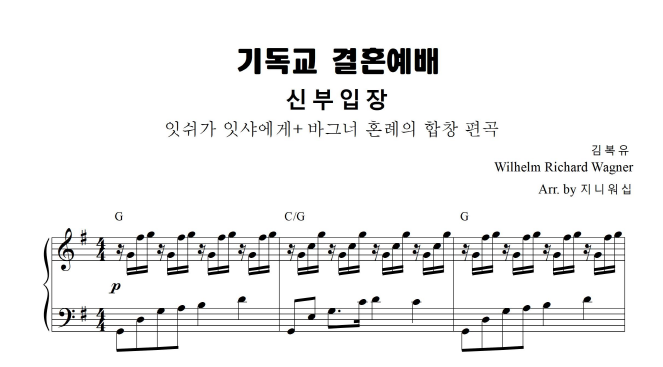| 기독교 결혼예배 반주 신랑입장,신부입장, 행진곡 모음 피아노반주 악보 (0) | 2024.04.23 |